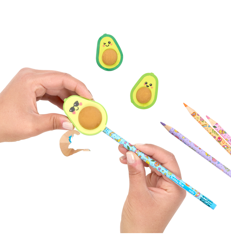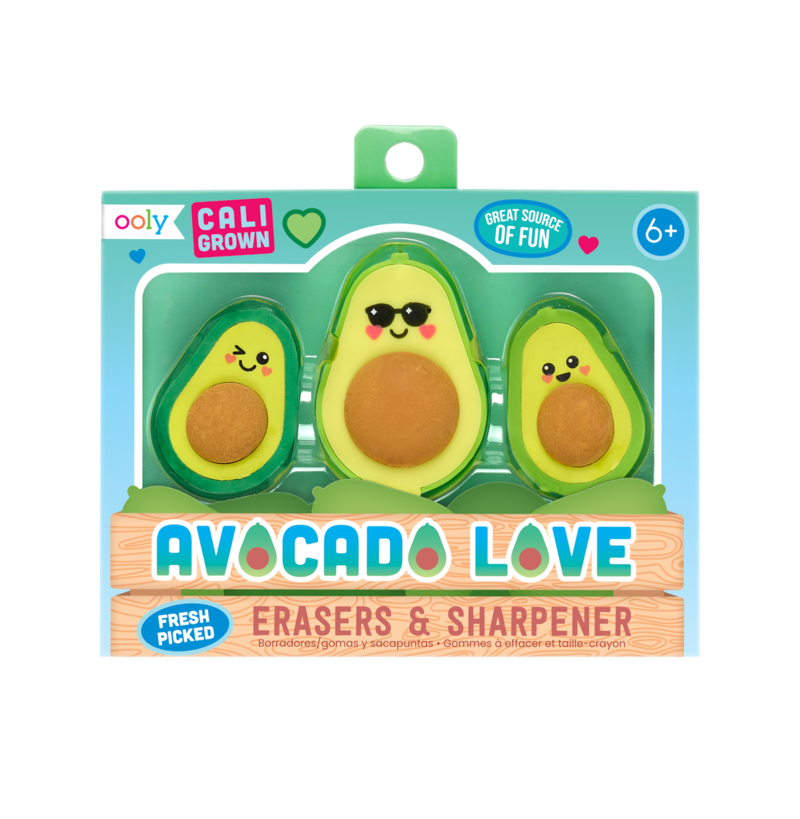 Freshly picked for you, these cute erasers shaped like happy little avocado halves that also can swap their faces and shells like a simple puzzle. And who wouldn’t love an avocado wearing sunglasses for a pencil sharpener? These avocado friends aren’t going on your toast but will add some Avocado Love to homework and schoolwork.