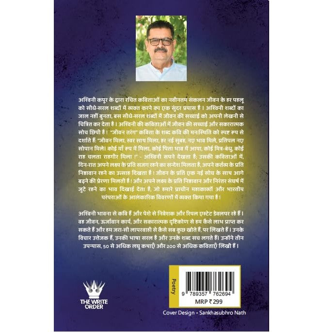 अश्विनी कपूर की द्वारा रचित कविताओं का नवीनतम संकलन जीवन के हर पहलू को सीधे-सरल शब्दों में व्यक्त करने का एक सुंदर प्रयास है । अश्विनी शब्दों का जाल नहीं बुनता , बस सीधे- सरल शब्दों में जीवन की सच्चाई को अपनी लेखनी से चित्रित कर देता है । अश्विनी की कविताओं में जीवन की सच्चाई और सकारात्मक सोच छिपी है ! “ जीवन तरंग “ कविता के शब्द कवि की मन:स्थिति को स्पष्ट रूप से दर्शाते हैं : “ जीवन मिला, स्वर साथ मिला , हर नई सुबह, नए भाव मिले, प्रतिपल नए सोपान मिले। कोई माँ रूप में मिला , कोई पिता भाव में आया , कोई मित्र–बंधु , कोई राह चलता राहगीर मिला !” —-अश्विनी सपने देखता है; उसकी कविताओं में, दिन -रात अपने लक्ष्य के प्रति सजग रहने का सन्देश मिलता है , अपने कर्तव्य के प्रति निष्ठावान रहने का उत्साह दिखता है ! जीवन के प्रति एक नई सोच के साथ आगे बढ़ने की प्रेरणा मिलती है ! और अपने लक्ष्य के प्रति निष्ठावान और निरंतर संघर्ष में जुटे रहने का भाव दिखाई देता है, जो हमारे प्राचीन महाकाव्यों और भारतीय परंपराओं के आलंकारिक विवरणों में व्यक्त किया गया है !
