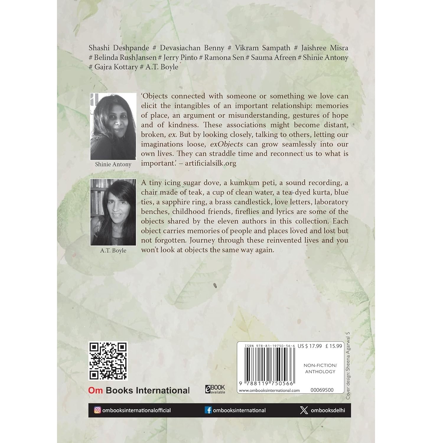 A tiny icing sugar dove, a sound recording, a chair made of teak, a cup of clean water, a tea-dyed kurta, blue ties, a sapphire ring, a brass candlestick, love letters, laboratory benches, childhood friends, fireflies and lyrics are some of the objects shared by the eleven authors in this collection. Each object carries memories of people and places loved and lost but not forgotten. Journey through these reinvented lives and you won’t look at objects the same way again.
