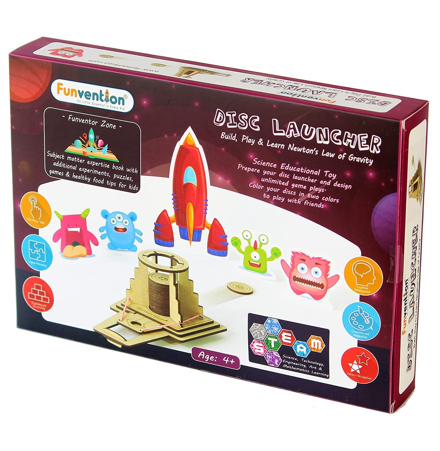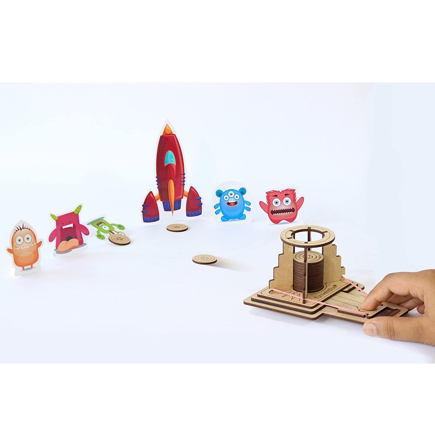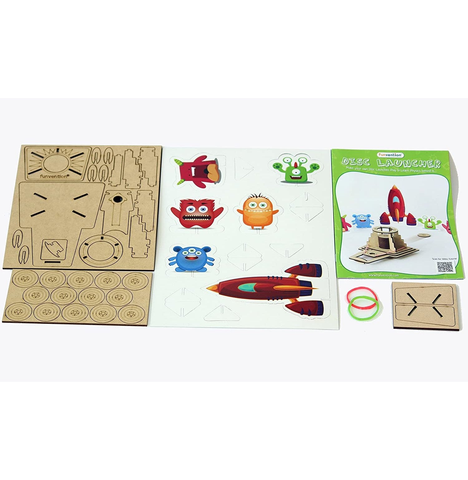 Single Kit Contain: Imported MDF Precise Laser Cut Parts to Build your Disc Launcher + Aliens and Space Rocket cutouts + Booklet with easy to understand, step by step Picture, text and video instructions, Game Play instructions, Explore & Learn Newton’s Law of Gravity, Puzzles &Fun-Food Recipes for kids.