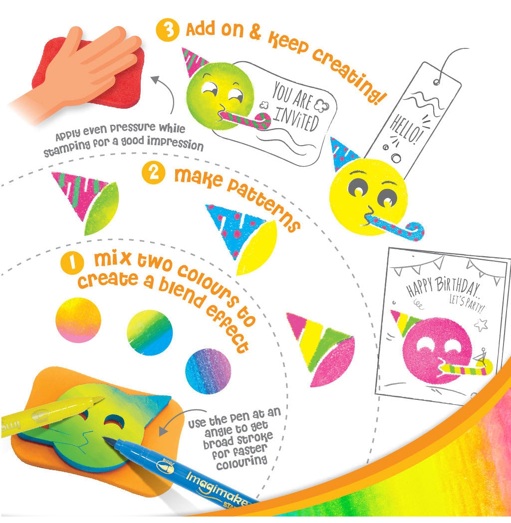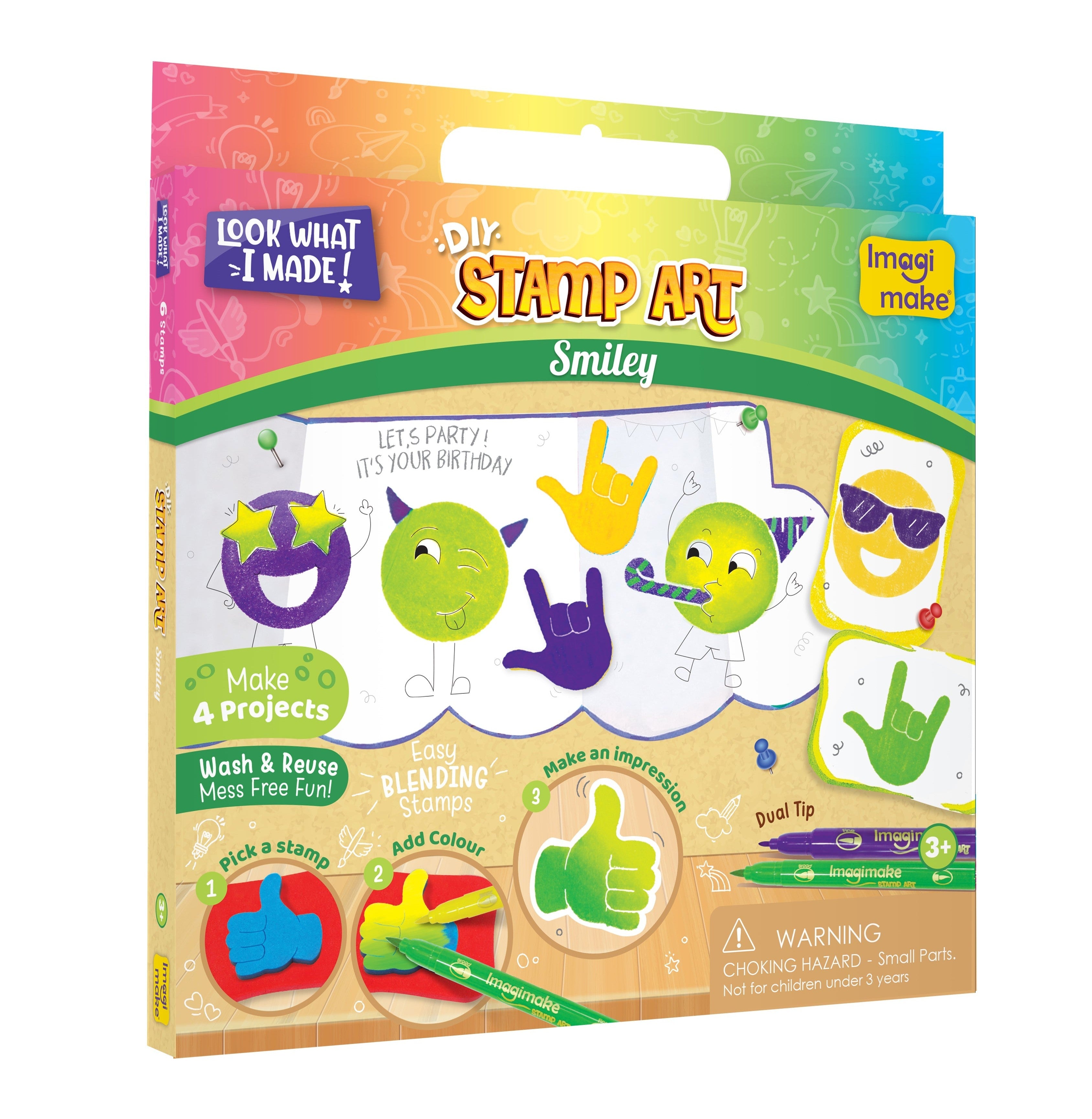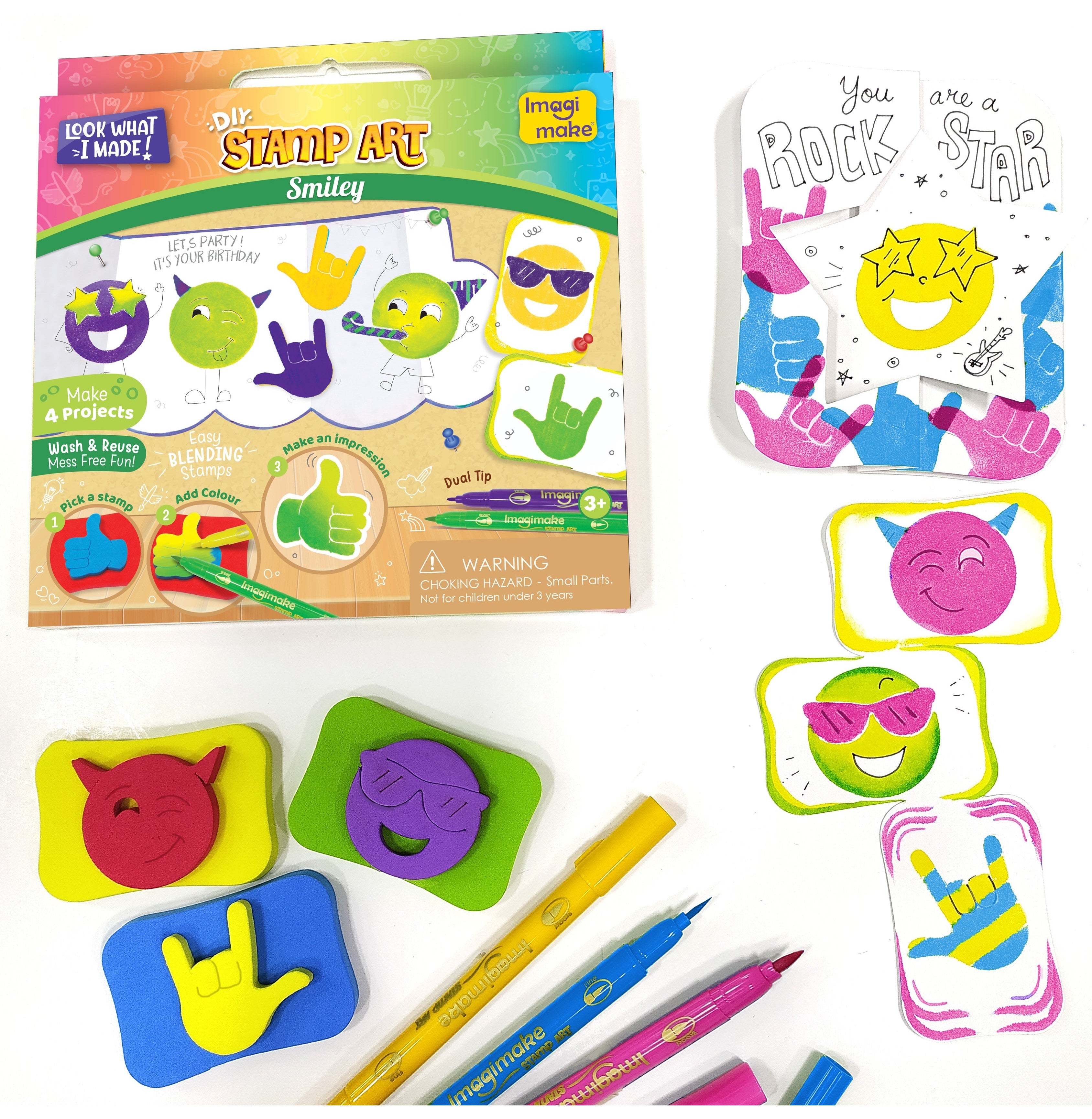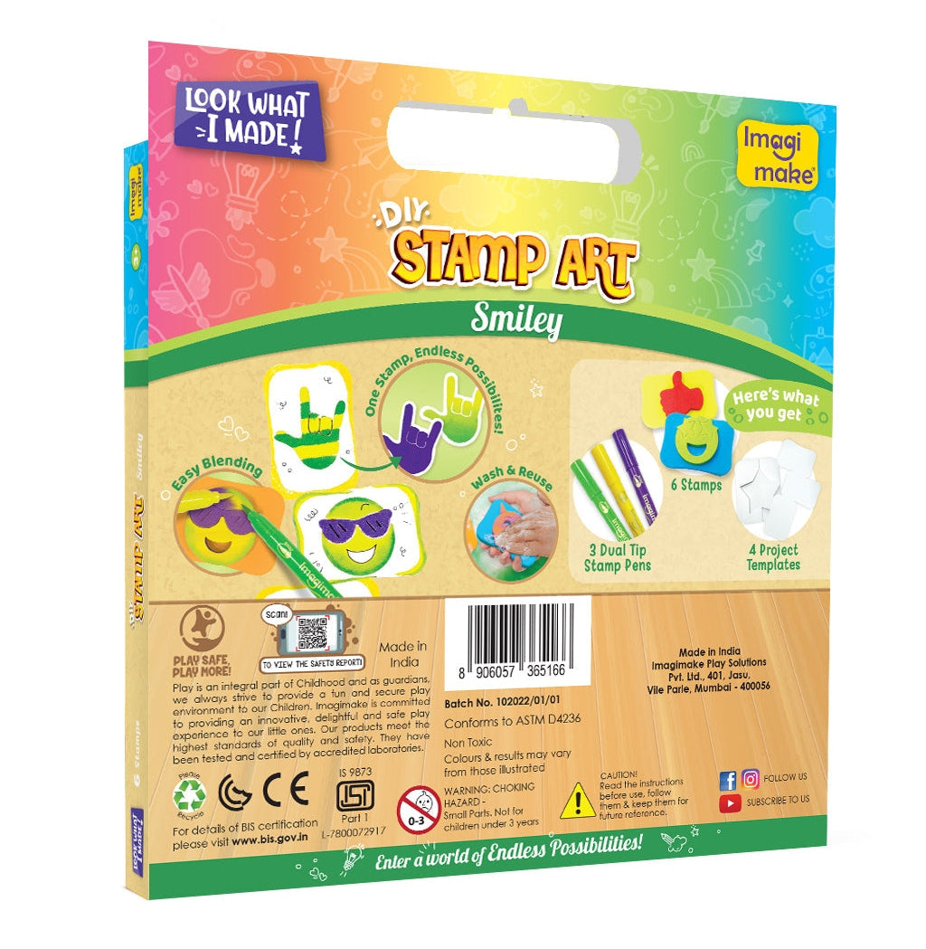 Transform playtime into a colorful adventure with Imagimake Stamp Art - Smiley, where color, stamps, and creativity come together for an unforgettable experience!