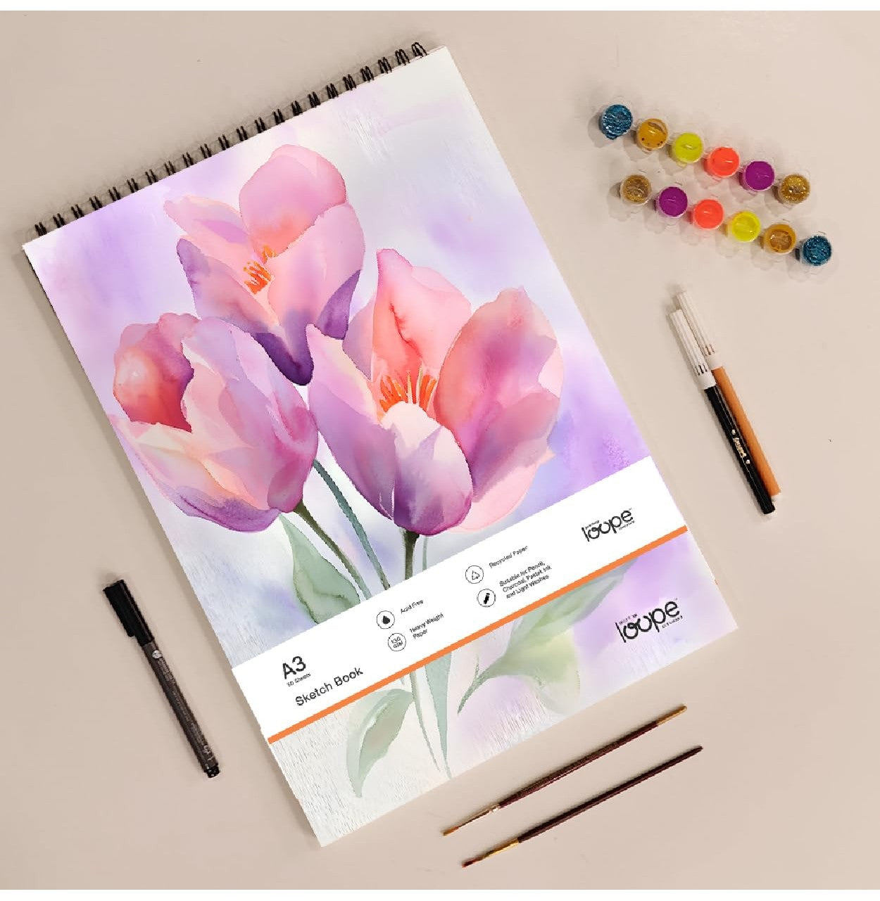 Create your best artworks with the LOOPE A3 Sketch Pad – 50 Sheets (Flower Design). Featuring 130 GSM premium acid-free and recycled paper, this sketch pad offers durability, smooth texture, and eco-friendliness in one. The high-quality sheets prevent yellowing and support multiple art mediums including ink, pencil, pastel, charcoal, and light watercolor washes. With a spiral-bound design and an inspiring floral cover, this sketch pad is a perfect choice for artists, students, and hobbyists looking for a reliable and beautiful drawing companion.