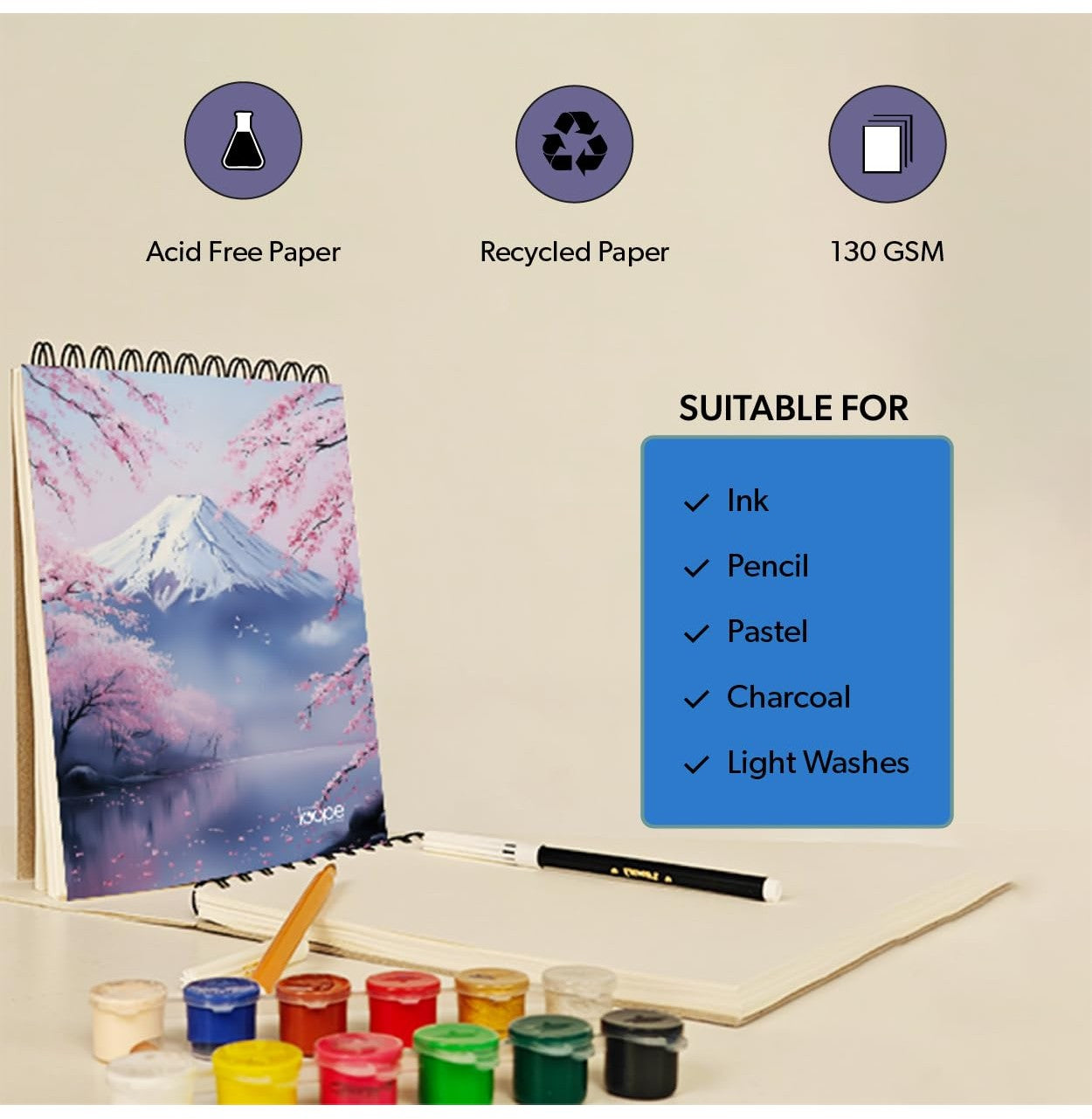Experience creativity like never before with the LOOPE A3 Sketch Pad – 50 Sheets (Japan Theme). Made with 130 GSM premium acid-free and recycled paper, this sketchbook ensures long-lasting quality and an eco-friendly touch. The smooth texture is perfect for multiple mediums such as ink, pencil, pastel, charcoal, and light watercolor washes, giving artists the freedom to explore and express. Its spiral-bound design makes page turning effortless, while the inspiring Japan-themed scenic cover adds elegance and motivation. Ideal for students, hobbyists, and professionals, this sketch pad is a must-have for every art lover.
