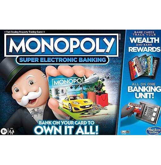 Monopoly Super Electronic Banking Board Game, Electronic Banking Unit, Choose Your Rewards, Cashless Gameplay Tap Technology