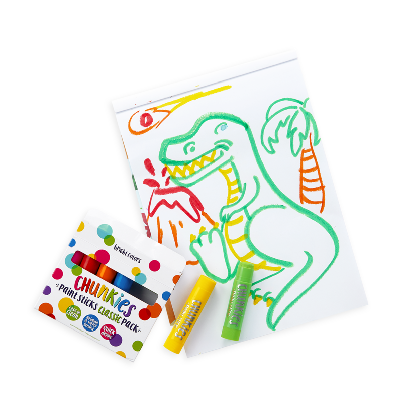 When you want to paint colourful pictures but don't want to leave the mess behind then it's time to reach for Chunkies Metallic Paint Sticks. Chunkies are super easy to use, clean and portable because they're like painting with a crayon. Just uncap, twist and start painting. Chunkies metallics are a set of 6 glowy coloured paint sticks housed in a thick barreled casing so they're easy for little hands to hold. The paint colours are quick drying and won't smudge, but it's easy to mix colors to make even more colours. It's magic!