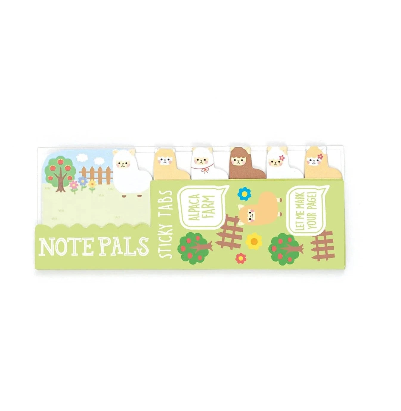 Note Pals Sticky Tabs featuring Alpaca Farm - Make your notes, calendars and any paperwork extra cute with Alpaca Note Pals Sticky Tabs. Alpacas are the odd, but cute looking llama like animal that's going to be your best pal for reminders, notes, bookmarks and anything else you can stick mini paper tabs to.