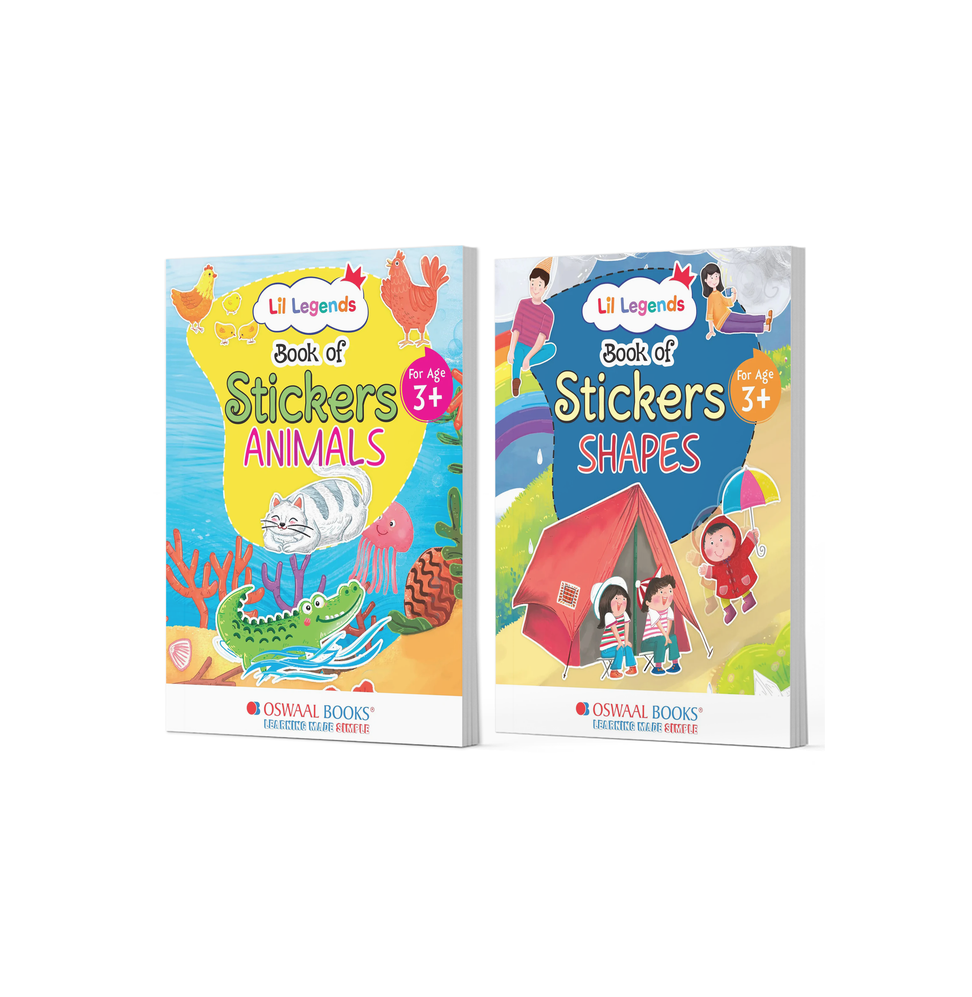 Oswaal Lil Legends 2-Book Sticker Combo – Animals & Shapes Learning Books for Kids (Age 3+) – Fun Peel-and-Stick Early Learning