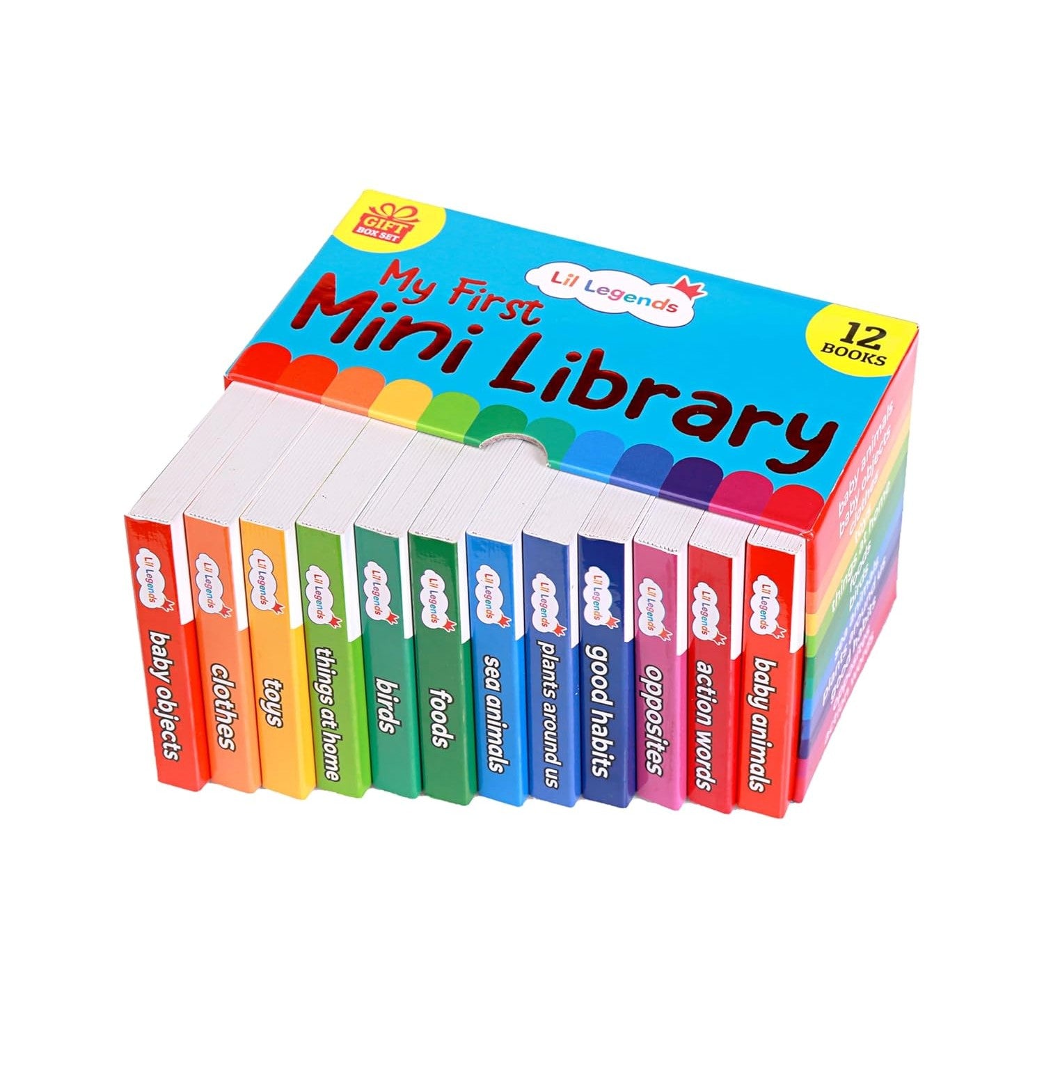 Oswaal Lil Legends Mini Library - Box Set | Volume 2 with Free School Bag | 12 Books (Baby animals, Baby objects, Clothes, Things at home, Toys, Foods, Birds, Sea animals, Plants around us and more)