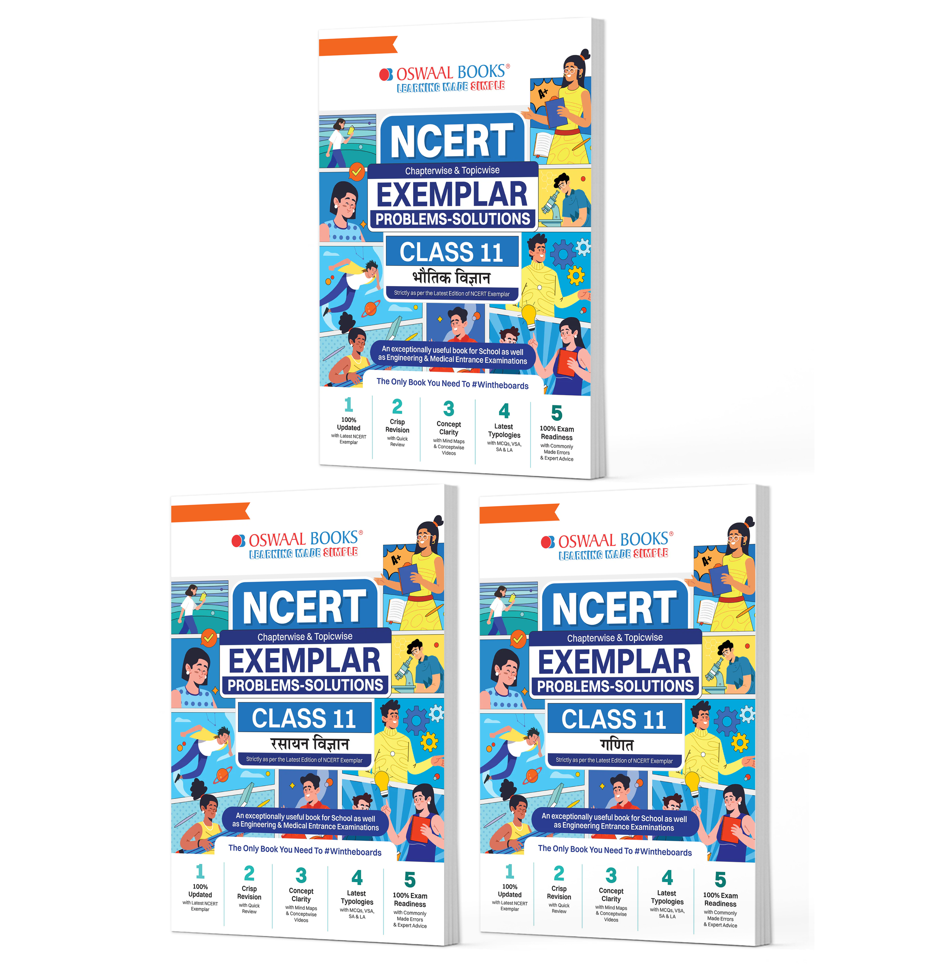 Oswaal NCERT Exemplar (Problems - Solutions) Class 11 Bhautik Vigyan, Rasayan Vigyan and Ganit (Set of 3 Books) For Latest Exam