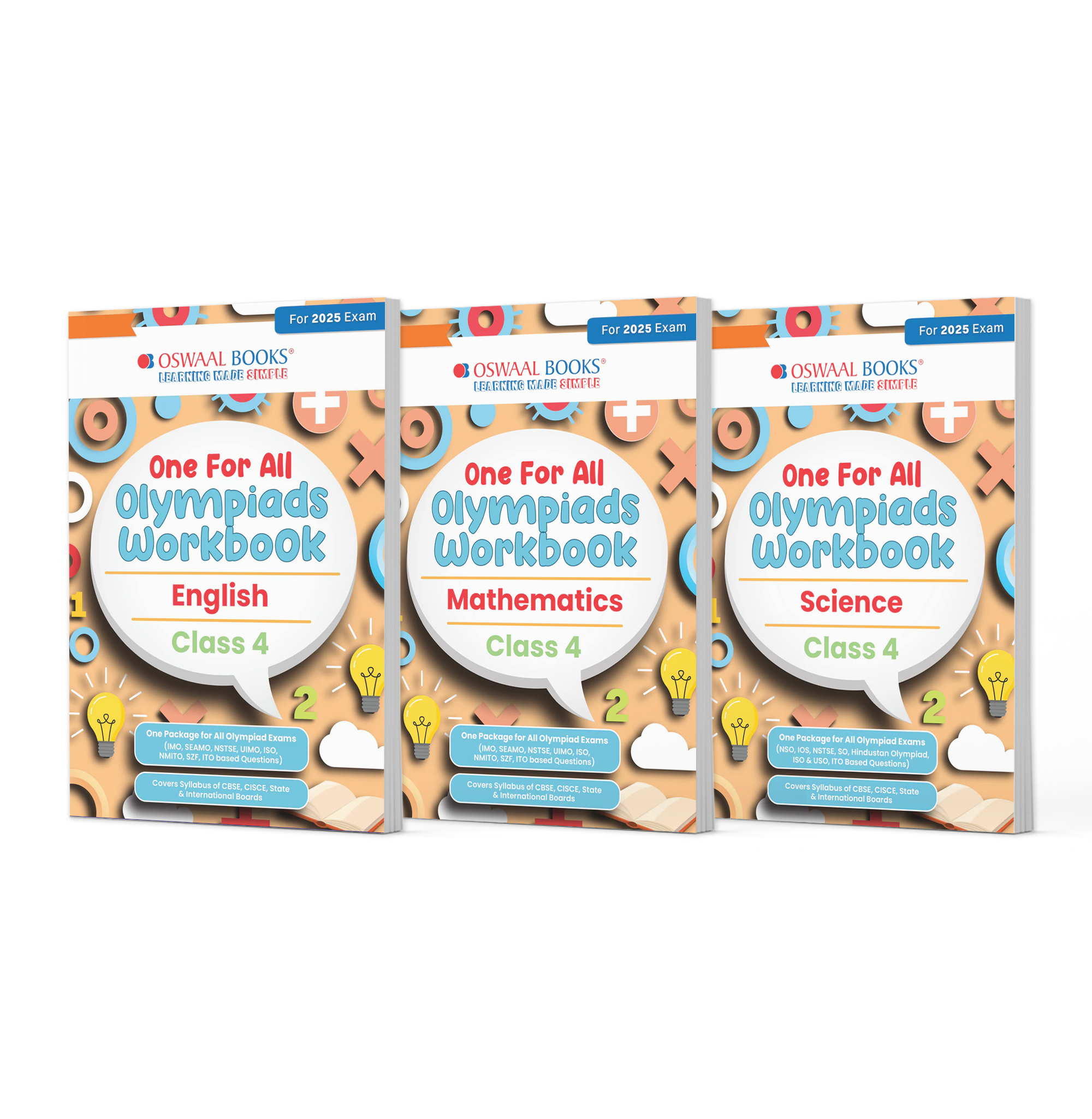 The One For All Olympiad Workbook Class 4 is the perfect resource for young learners aiming to excel in their Maths, Science, and English subjects for the upcoming 2025 exams. This set of three books is designed to enhance your child's understanding and retention through a comprehensive and structured approach.