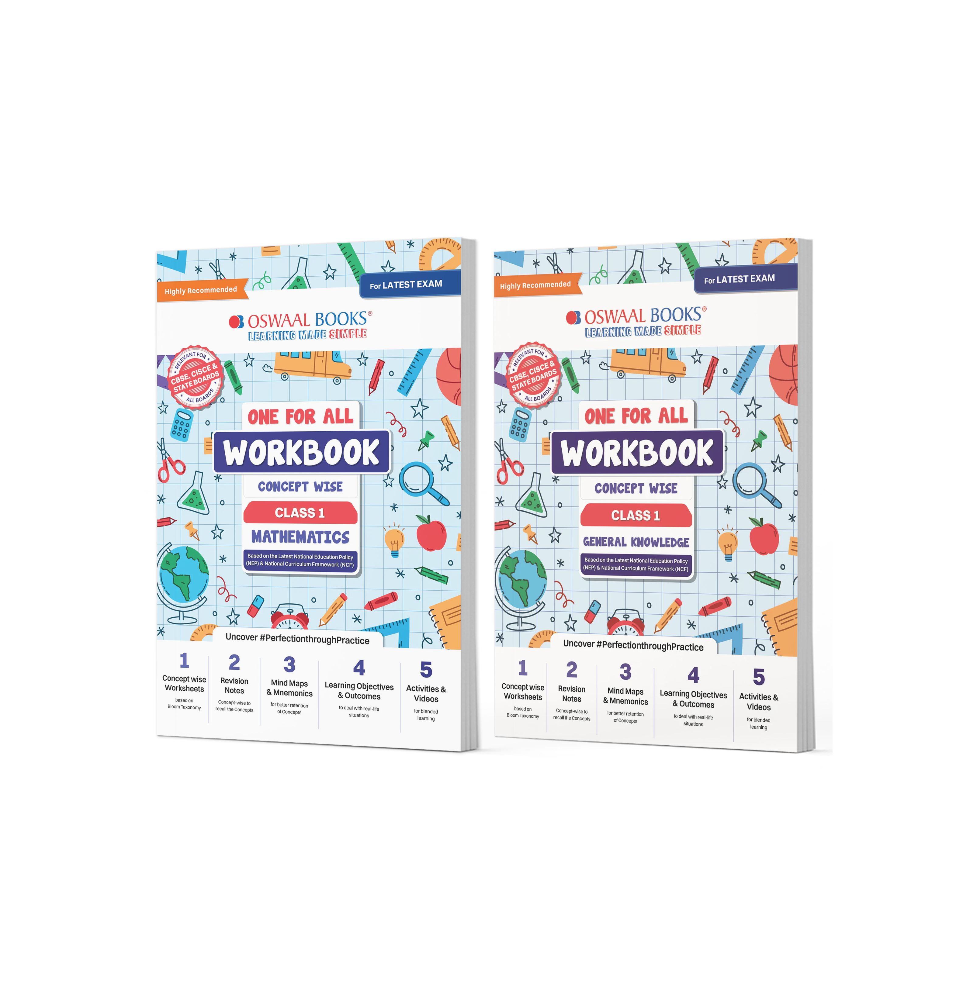 Oswaal One For All Workbook Concept Wise Class-1 Mathematics & General Knowledge (Set Of 2 Books) (For Latest Exam)
