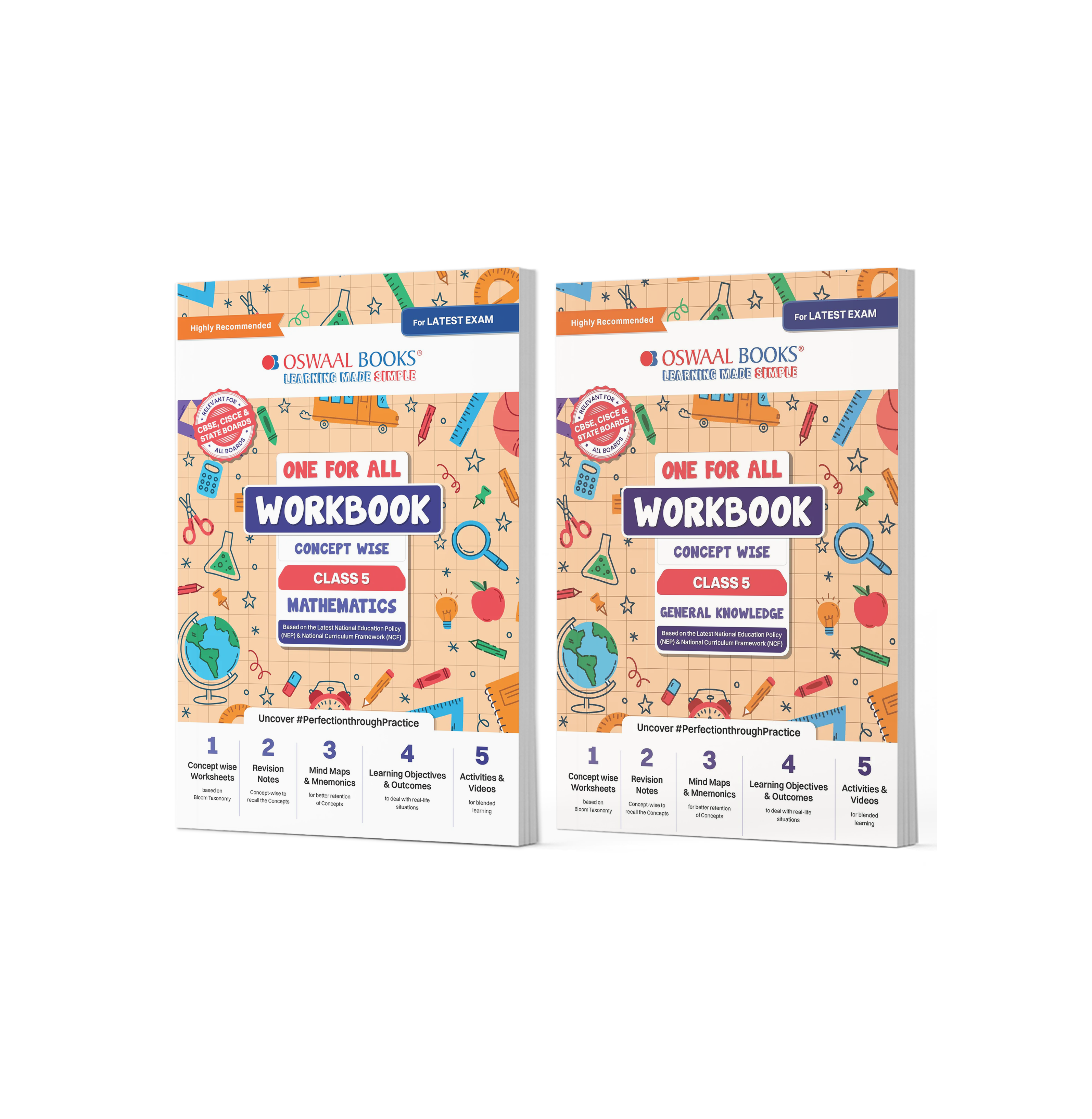 Oswaal One For All Workbook Concept Wise Class-5 Mathematics & General Knowledge (Set Of 2 Books) (For Latest Exam)