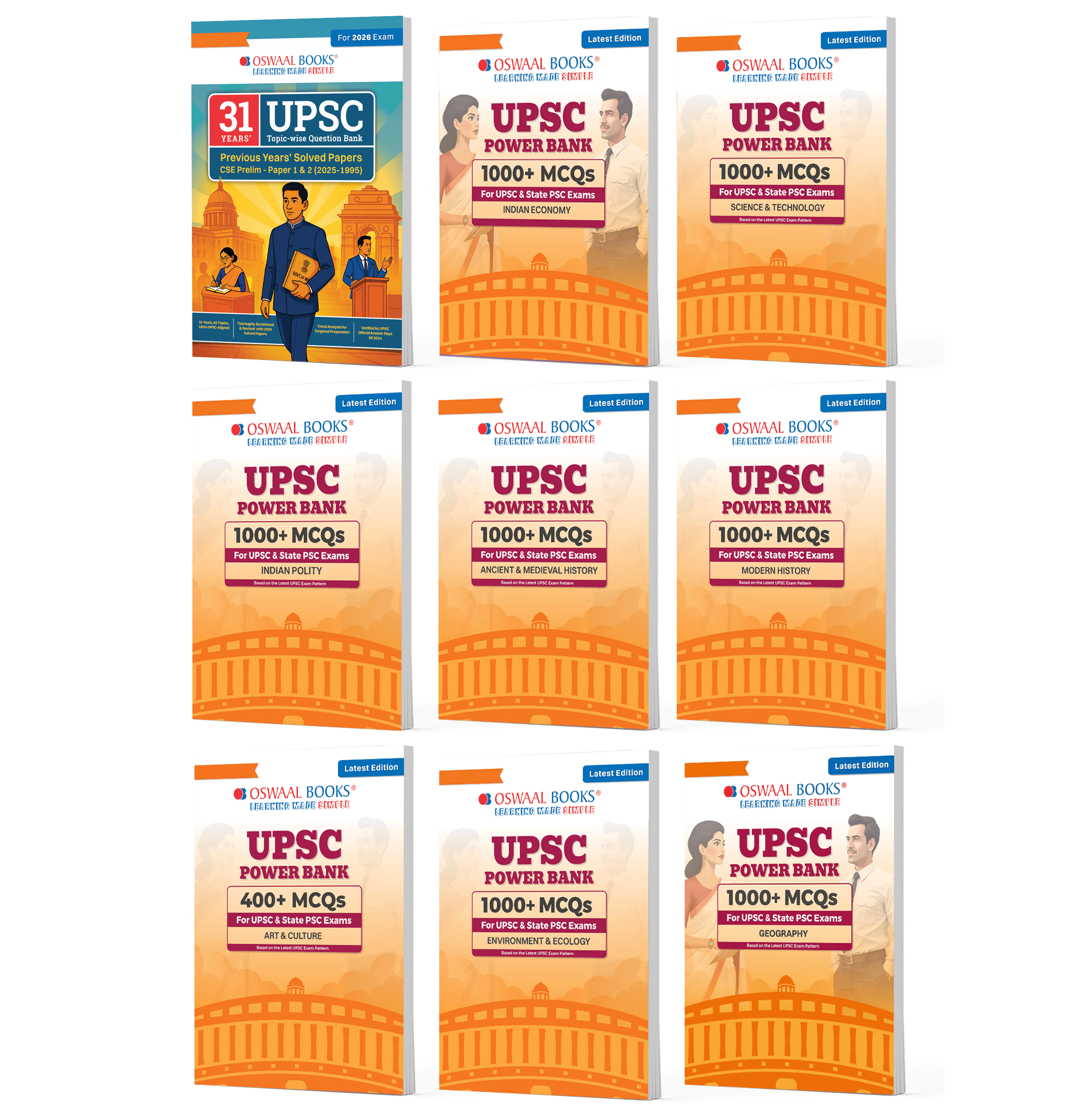 Oswaal Power Bank 1000+ MCQs for UPSC| Modern History, Ancient & Medieval History ,Indian Polity, Indian Economy, Geography, Science & Technology, Ecology & Environment, Art & Culture + 31 years UPSC Question Bank | Set of 9