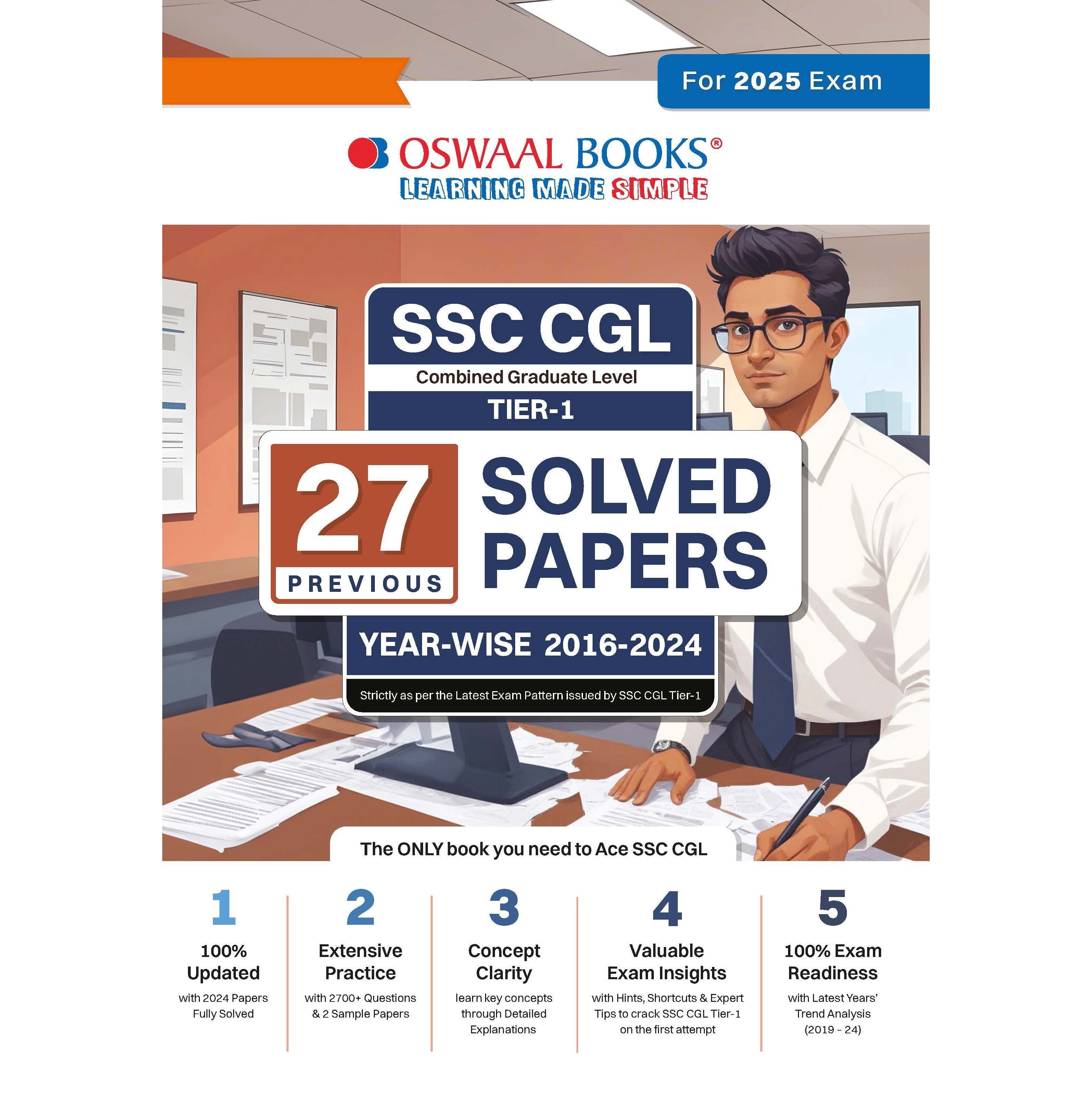 Oswaal SSC (Staff Selection Commission)| CGL (Combined Graduate Level)|Tier-1| 27 Previous Solved Papers| Year-wise (2016 to 2024)| For Exam 2025