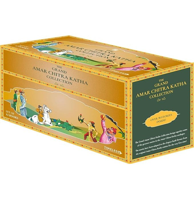 The Grand Amar Chitra Katha Collection brings together all twelve titles published in the much-loved Amar Chitra Katha chapter book series. This collection includes Buddhist Stories, Tales of Wit and Wisdom, Funny Folktales, Amazing Folktales from South Asia, Fascinating Stories from India, Unusual Fables from India, Jataka Tales, Fabulous Fables from India, Witty Minister Stories, Stories from the Panchatantra, Royal Fantasy Stories and Favourite Indian Folktales.